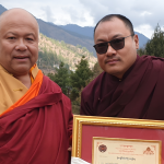 In 1991, The great dzogchen master His Holiness Nyoshul Khen Rinpoche presented Longchenpas statue, text book of (Chos dbying rin po chei mdzod) The precious treasury of the basic space of phenomena, vajra and bell and a set of Tulkus robes to Dordzin Tulku and conducted a traditional enthronement and named him Ugyen Tashi by recognizing Dordzin Tulku as one of the respected masters’ incarnations.